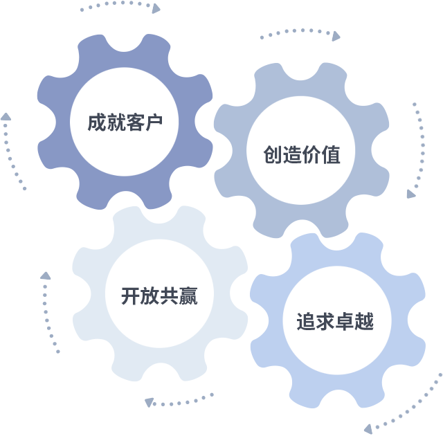 成就客户是一切决策的出发点,创造价值是衡量所有工作的标准,追求卓越是857直播做事做人的态度,开放共赢是857直播的格局也是最终的结果。价值观的齿轮环环相扣,推动着组织里的每个人不断向前。